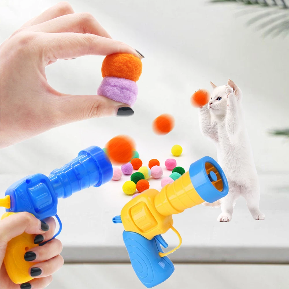 10-100pcs Cat Plush Ball Shooting Gun Funny Cat Toys Interactive Launch Training Toy For Pet Kitten Creative Mini Shooting Games